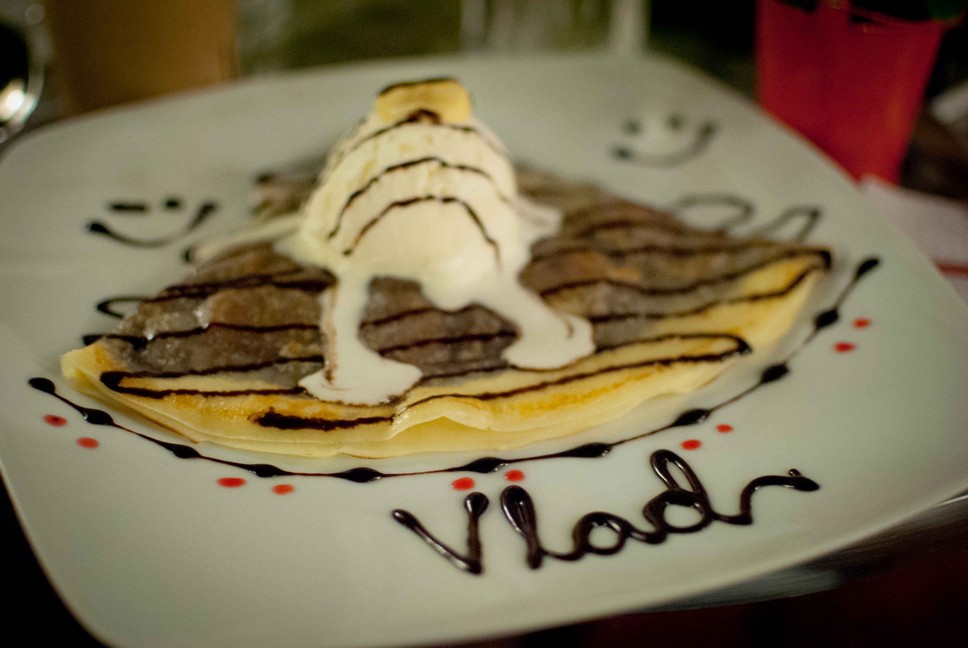 Pagkatapos ay lumipat kami sa katabing crepe store. Unang beses ko pa lang makapunta doon. Sila, dahil may nakahanda nang listahan ng order, naisip kong hindi na baguhan sa lugar. Natanong ko, sa gitna ng usapan tungkol sa mga Blackberry at Ipad, sa mga kaibigang nasa ibang bansa, sa Naruto comics number 576-577, sa mga gig sa Palawan, natanong ko kung kailan sila unang nakapunta sa crepe shop na kinakainan namin. Sumagot ang isang L, “noong December.”
