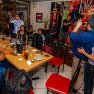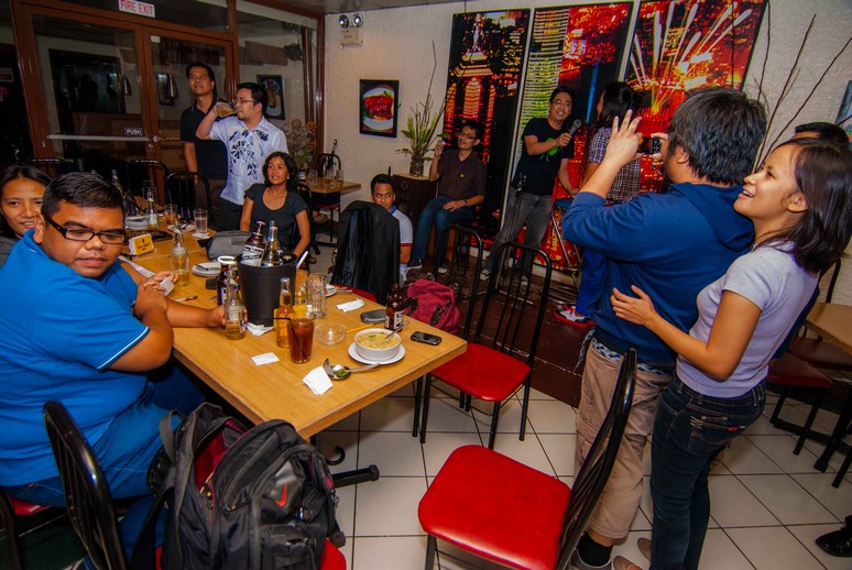 At yun siguro ang sikretong malupit ng aking/aming happy place. Parang pagkanta ng sanitized na “Walanghiyang Pare Ko:” Pare ko, meron akong problema, wag mong sabihing “na naman.” Same old same old. Mga litanya tungkol sa mga bagay na andiyan at wala, mga kumplikasyong sinususpinde pansamantala. Mga pag-alalang masaya na masakit, pwedeng pag-usapan pero idinadaan na lang muna sa kanta. at tutal kakanta naman, kakanta na nang may kasama.