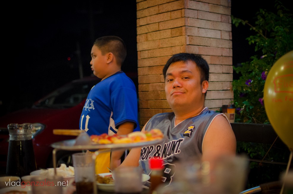 Wala ang mga magulang ko noon dahil nagtatrabaho sila sa Laguna pero umuwi sila noong Sabado. Naki-party sa birthday ng isang pamangkin, pagkatapos ay nag-Shakeys kami noong gabi, kasama si Kuya Bryan, si Pia, sina Barrick at Nimra, sina Mama at Papa. Syempre, ang asong si Alejandro kasama din. Nag-monster meal kami ng Shakeys, nakahabol pa si Yani sa kainan. Maaliwalas ang mukha ng lahat ng tao. Si Papa, siya ang mukhang pinakamasaya, pati sa mga biro ng kapatid kong si Yani’y napapatawa kahit madalas ay nagtatarayan lang sila.