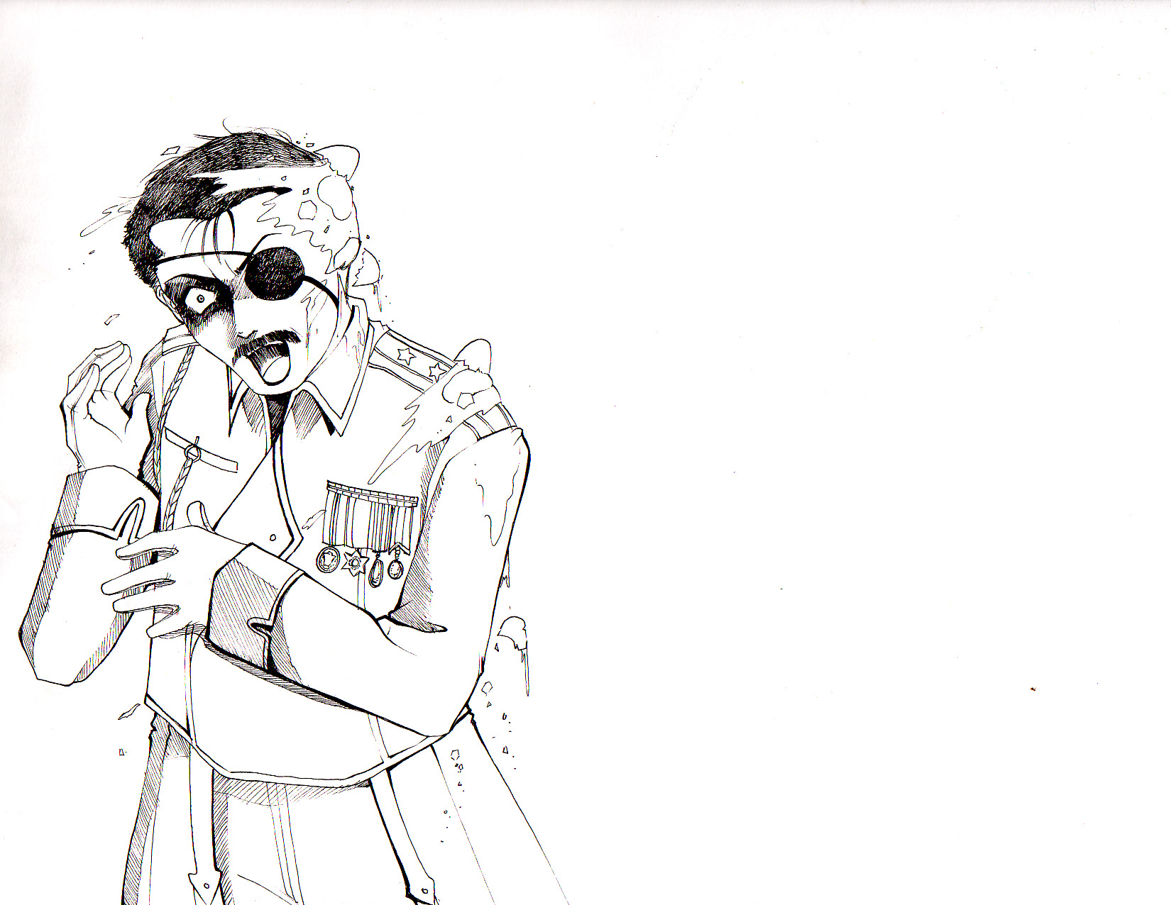 Sumunod pa ang pambabato ng mga itlog. Tatlong estudyante ang nakalusot sa security system ng conference room (dahil sa hindi na-detect ng mga makina bilang “lethal weapon” kundi pagkain ang mga nakatagong itlog sa kanilang katawan). Mayroon pa palang mga ganitong tipo ng estudyante rito, akalain mo nga naman” nasabi ni Esperon sa kanyang sarili. Hindi siya sumigaw o tumakbo papalabas. Kalmado pa rin siyang nakatayo suot ang kanyang matikas na gala uniform, ngumitin siya bago tumungo’t pindutin ang isang buton sa kanyang relo.