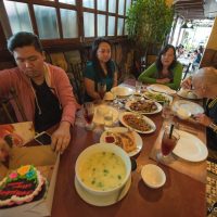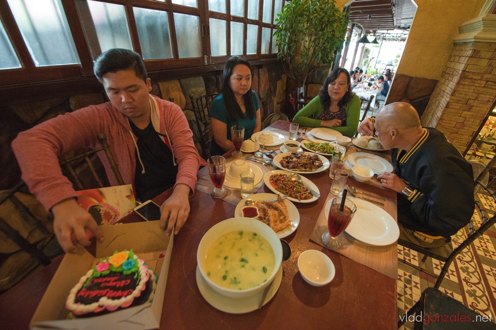 Sa Calle Arco sa Pagsanjan kami dumayo para sa tanghalian. Sa dinami-dami ng punta doon ay hindi pa pala namin naisasama sina Mama at Papa. Kaya ginawa naming pagkakataon ito para bumawi. Gaya ng alam na naman naming nakapunta na doon, masarap naman ang pagkain at palaban lalo ang Crispy Pata nila. Healthy food dapat kasi sa mga nasa edad singkuwenta. Saka hidden agenda namin iyon ni Tanya. Winner din naman ang callos, corn soup, camaron rebosado, at ang ginisang ampalaya. May pansit habhab pa sana, pero nakalimutan ng magluluto kaya pang-next time na lang. Bukod sa mga ulam, laging kapiling din ang Mer-Nel’s cake na mas madalas na lang na pang-photoop kesa kinakain (o kinakain namin, kasi madalas ay pinamimigay namin ito sa iba para maranasan nila ang chocolate cake na ito)